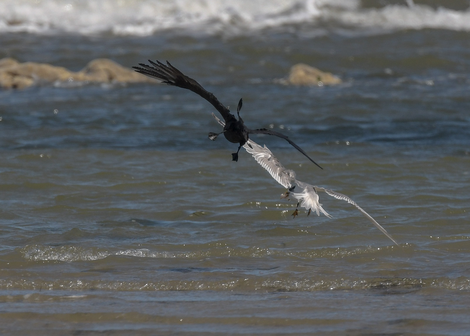 With so many gulls around any catch that was made was hotly pursued by the gulls. And at one point a frustrated Tern decided to attack the annoying gull.
