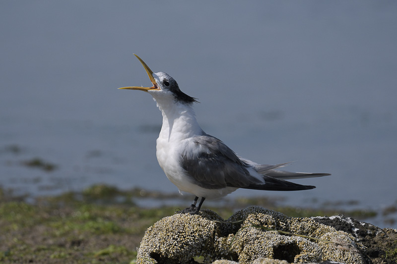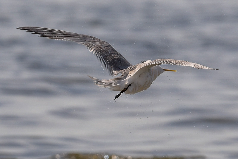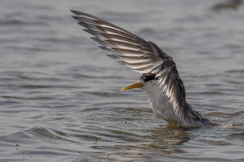 White-faced Heron on final appraochLots of Greater Crested Terns stopping by to rest on the rocks or sandWhiie I was busy with the terns, this Pelican wafted in silently and I turned around to realise how close it had landed.Greater Crested Terns really make the most of the shallow water for a bathAnd spin dry to remove the water.Shoals of fish further out kept the Silver Gulls and Cormorants busyThe Pacific Gull joined the Silver Gulls and showed off its own special technique of grabbing the small preyCoughing up a fish ballPied Oystercatchers usually announce their progress along the beach in flight. This couple arrived silently.