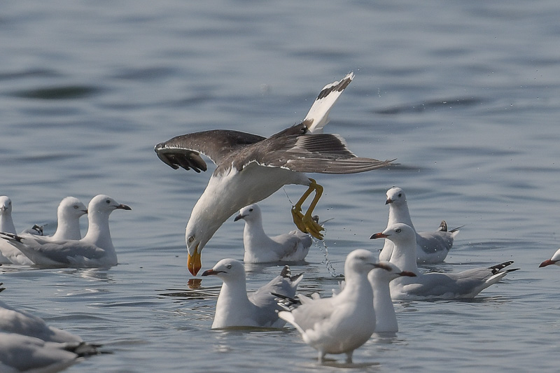 Down by the pylons of the old jetty a Pacific Gull pair were stationed bobbing up and down in the waves. Then with a leap, they would duck under the water and emerge with a crab dinner.