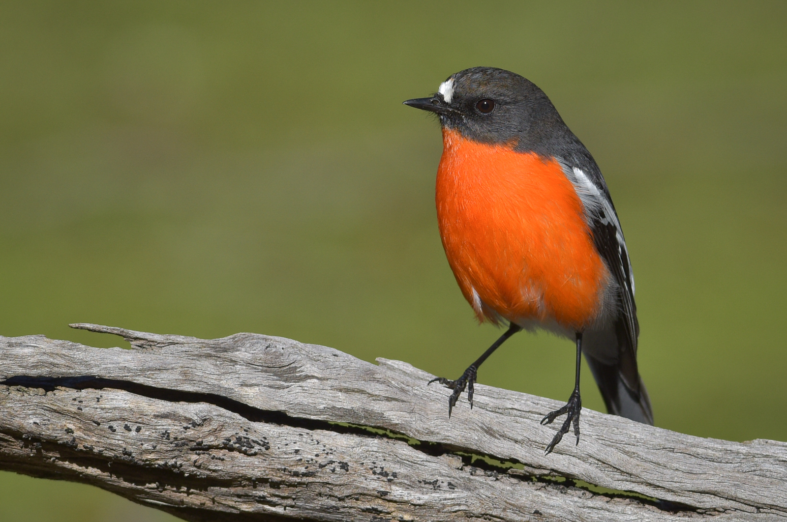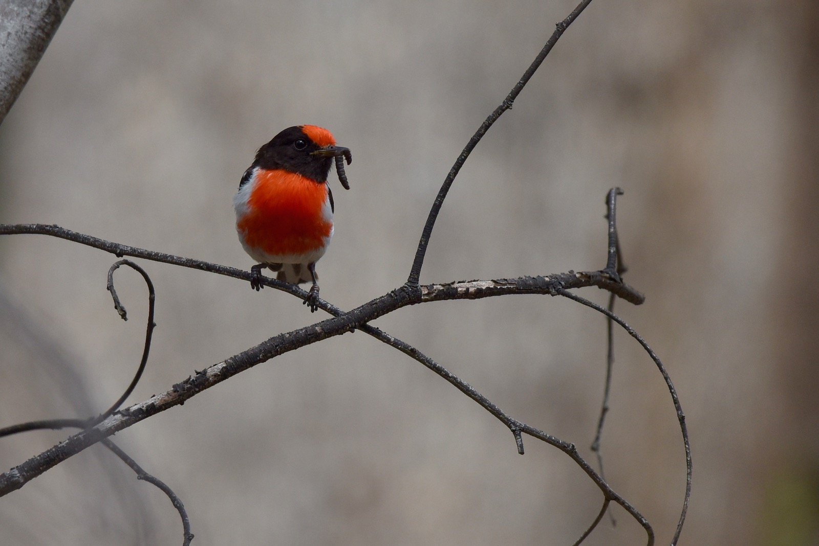 But the number of layover areas, and the resultant saltbush deteriorated over the next few years, and the Robin numbers that we saw decreased. And at the moment, I believe, (well I’m allowed a theory or two), that as the plant and the carotene insects diminished, so did the resident Red-capped Robins. And the Flame and Scarlet Robins moved on to other areas for winter — some not too far as there a seriously large mobs of the Forresters down along the Moonee Ponds Creek outside the predator-fence.
